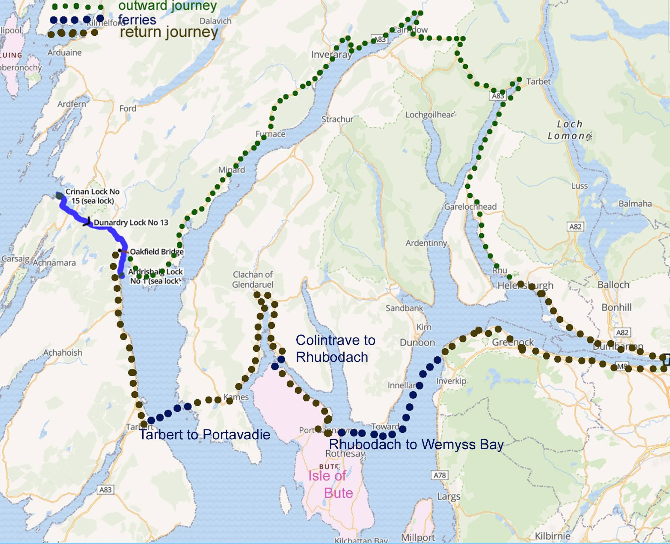Just ahead of the AccursedVirus, we had ten days in Scotland, around a handicraft exhibition looking out on the River Clyde, walking around Edinburgh, the Glasgow canals, then via Inverary to the Crinan Canal with Fyne, Bute and Rothesay carferries on the return to Helensburgh; and boat trips on Ullswater, Loch Katrine, Loch Lomond and the Clyde. |