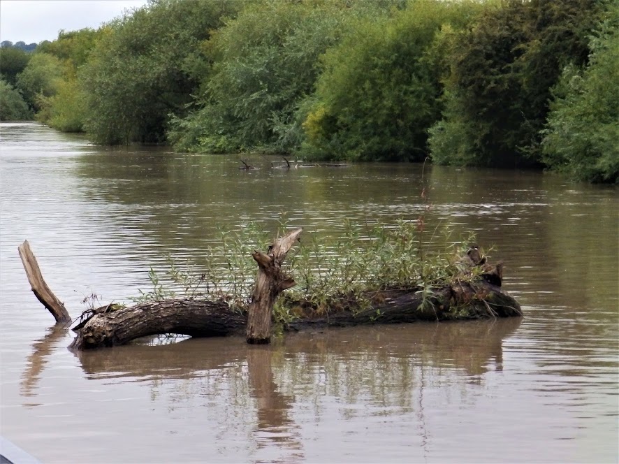 Our western trip was on the River Severn. We navigated from Worcester to Sharpness and back with friends on their narrowboat Sapphire. From Upper Lode lock to the entrance to the Gloucester and Sharpness Canal at Gloucester, on some days of the monthly tidal cycle, there is a significant tide. We consulted the Canal and River Trust lockkeeper at Upper Lode who gave excellent advice to moor up at Lower Lode moorings for a couple of hours and then go downriver with the ebb tide, which he said was two metres over the weir at Gloucester on this morning. This tide had all the tree-covering brown swirling water, with its fair share of large logs, all threatening to jam the propeller. The tide was carrying us at about 9mph as we arrived at Upper Parting at Maisemore, needing to take the narrower East Channel towards the lock, rather than the larger West Channel to the weir. |