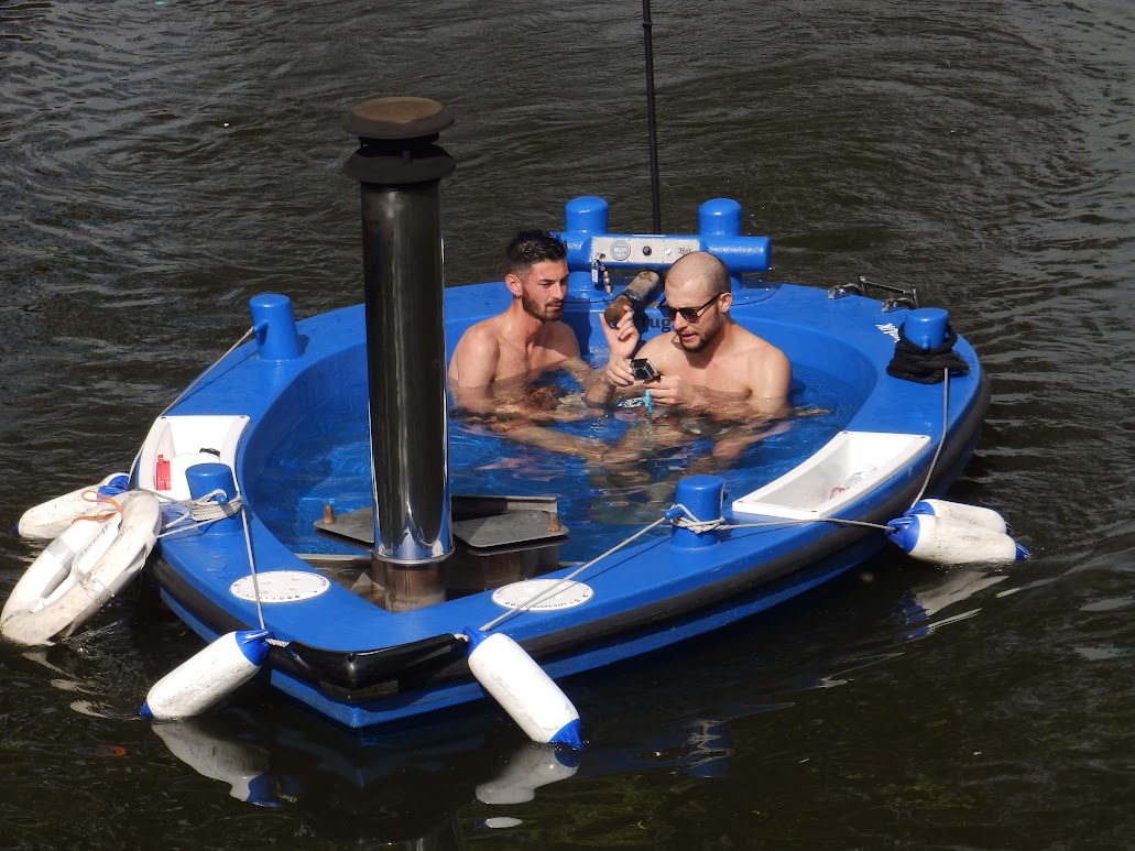 They heat some water to 38 degrees, and keep it warm with a log-burning stove in the front of the 'Hottug'. Reassuringly, they have clean water for each new group of customers, who don their swimming gear and navigate their hot-tub along the canal. Ideally the company need long sections without locks for their proposed expansion to other locations. Just the thing, then, for a chilly day on the Aire and Calder. |