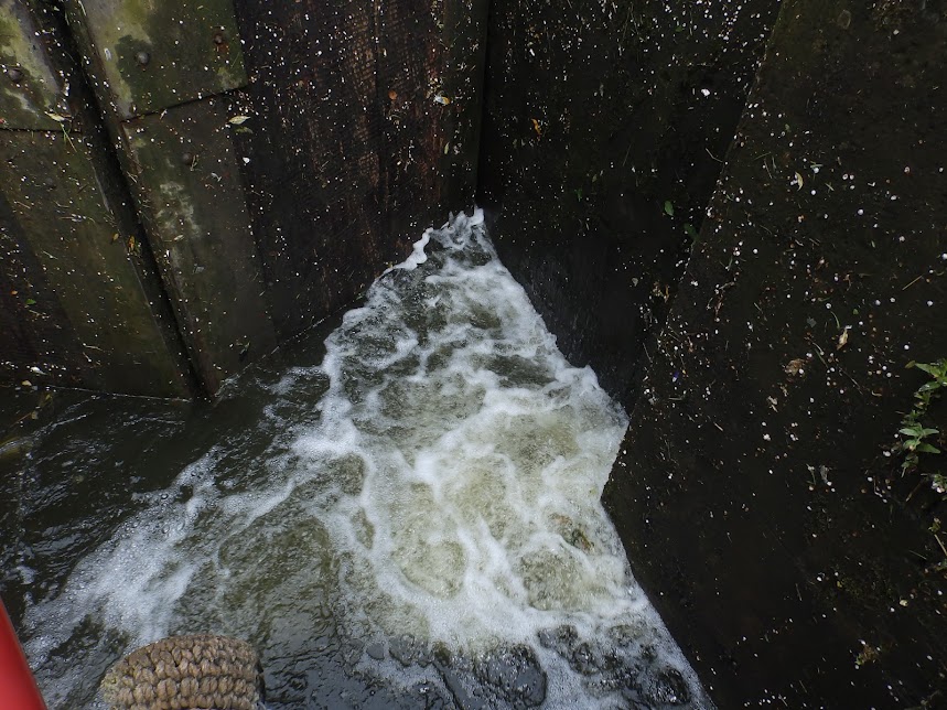 (*) Boating Tip for Garrison. Uniquely, this flight has a water channel behind the lock walls, so that raising a top paddle will have a rush of water behind the bottom gate which will close it. Well done C&RT for keeping these channels working, which over-the-years they haven't always been.