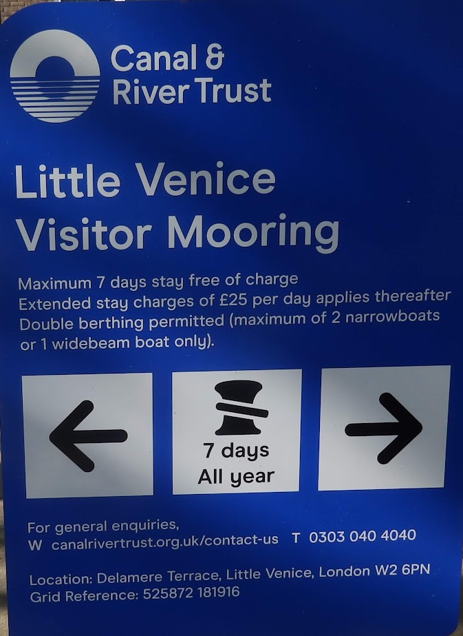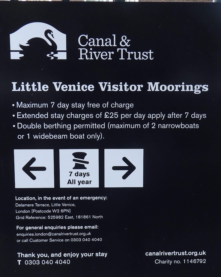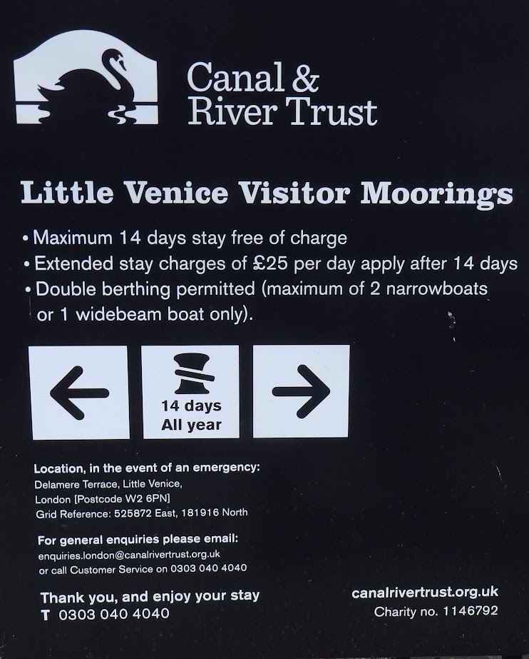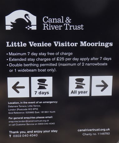 2016 version of the mooring restrictions at Little Venice towingpath |